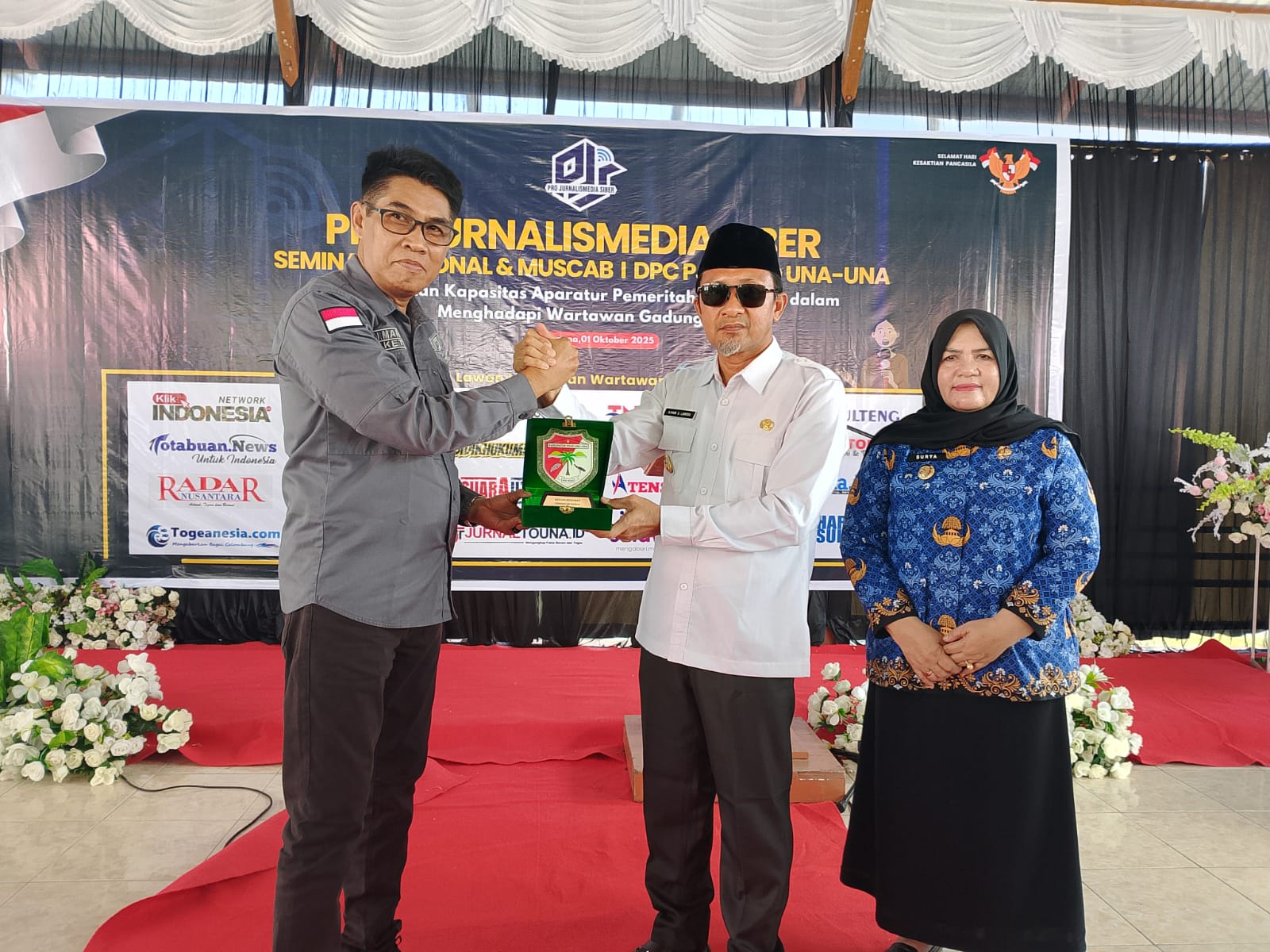 Touna — Bupati Kabupaten Tojo Una-una, Ilham Lawidu, bersama Wakil Bupati Hj. Surya, S.Sos., M.Si, menghadiri Musyawarah Cabang I (Muscab) Dewan Pimpinan Cabang (DPC) Pro Jurnalismedia Siber (PJS) Tojo Una-una yang dirangkaikan dengan Seminar Nasional, Rabu (1/10/2025), di Marina Cottage’s, Ampana.