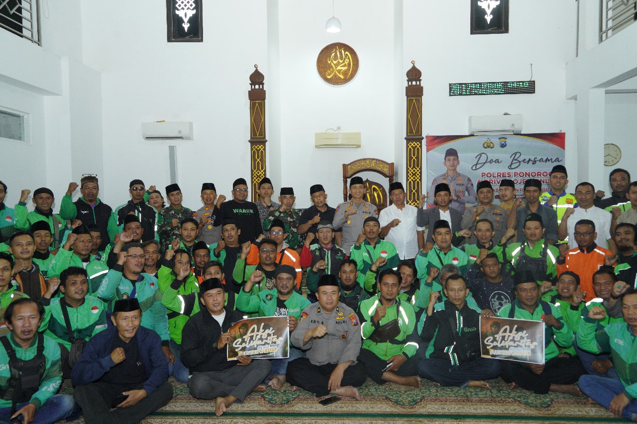 Doa Bersama Polres Ponorogo dan Komunitas Ojol, Kapolres: Mari Kita Wujudkan Ponorogo yang Aman dan Damai
