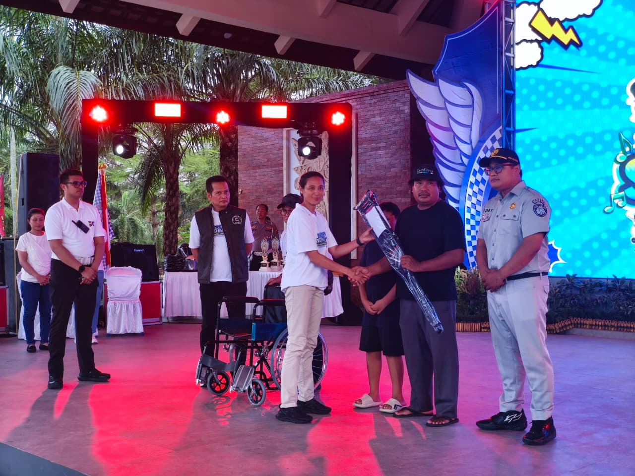 Dalam momentum tersebut, Polres Jembrana bersama Forkopimda menyerahkan bantuan kursi roda dan tongkat kaki kepada korban laka lantas, serta sarana keselamatan berkendara kepada komunitas ojek online Jembrana sebagai simbol dukungan terhadap pengemudi yang patuh aturan.